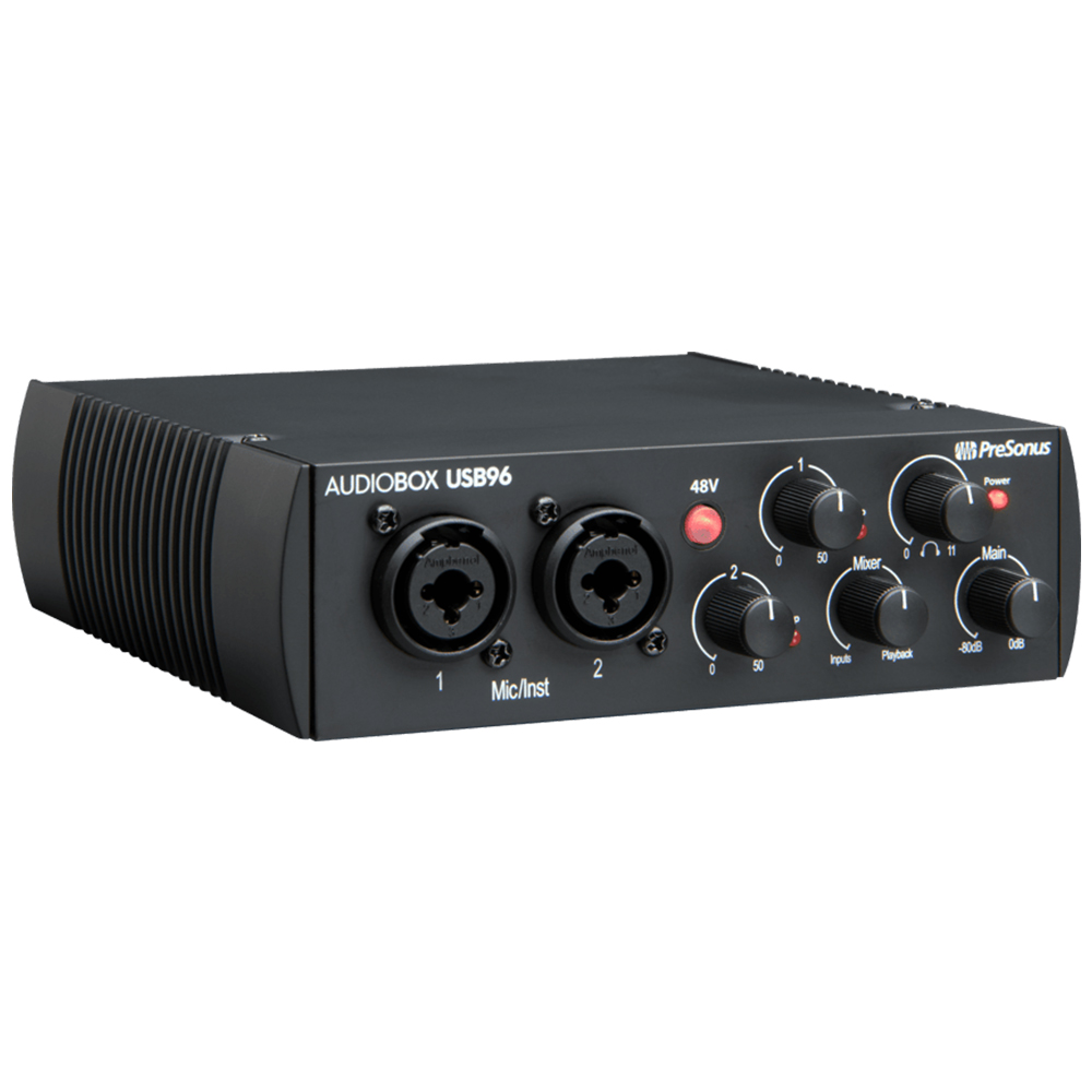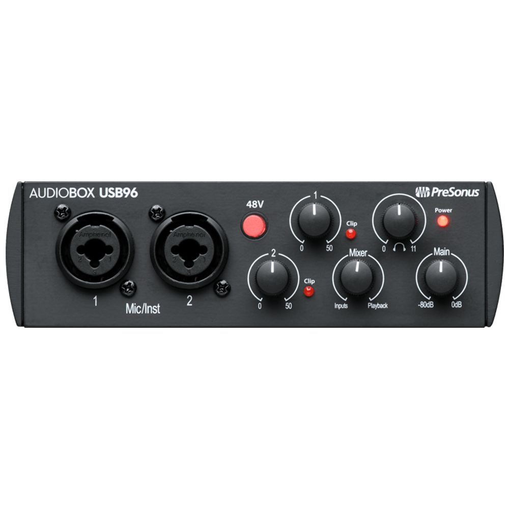 The PreSonus AudioBox USB 96 is a bus powered audio interface for recording, streaming or zoom calls. Two front-panel combo mic/instrument inputs, two balanced line-level outputs, an ultra-loud headphone out, and MIDI I/O make the AudioBox USB 96 an great solution.